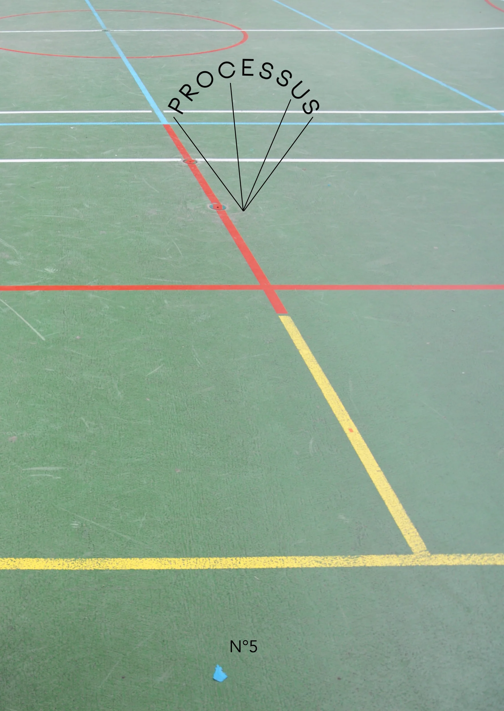 Processus propose une nouvelle collection où les femmes mènent le jeu. La silhouette est franche, précise, assurée. Le vêtement, propulsé par le corps, reste suspendu, léger comme le papier, performant comme un athlète. L'imperméable s'invite sur le terrain et les robes participent au match. L'étoffe souligne chaque mouvement. La couleur s'impose comme un uppercut. De cette chorégraphie, que scénographie le marquage au sol, jaillissent l'écho des corps et l'éclat des voix.